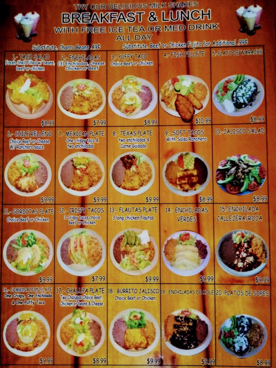 Welcome to El Taco De Jalisco, a treasure trove of traditional Mexican flavors nestled in San Antonio. This charming eatery specializes in mouth-watering tacos that will remind you of grandma's cooking, delivering homemade goodness right to your table. The menu boasts enticing options like the Taco Salad with a fresh tortilla shell and seasoned toppings, and Enchiladas drenched in gravy and cheese. A highlight is definitely the Puffy Taco Plate, offering a unique twist on a classic dish.